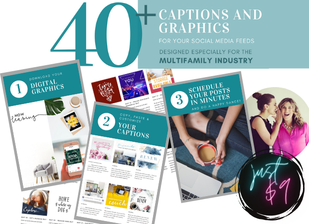 With this discounted price you'll get access to a members-only site where you can download over 40 new digital graphics with madlib style captions specifically created for the apartment marketing industry.